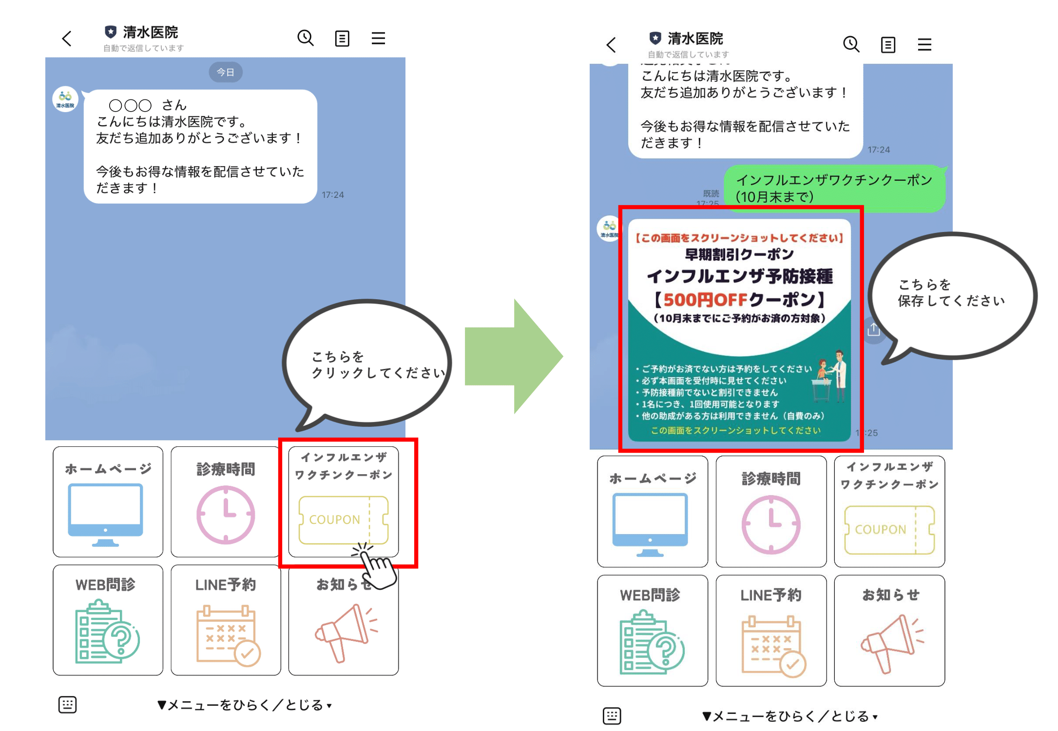 ※接種券・LINEクーポンをお持ちの方は受付でご提示ください